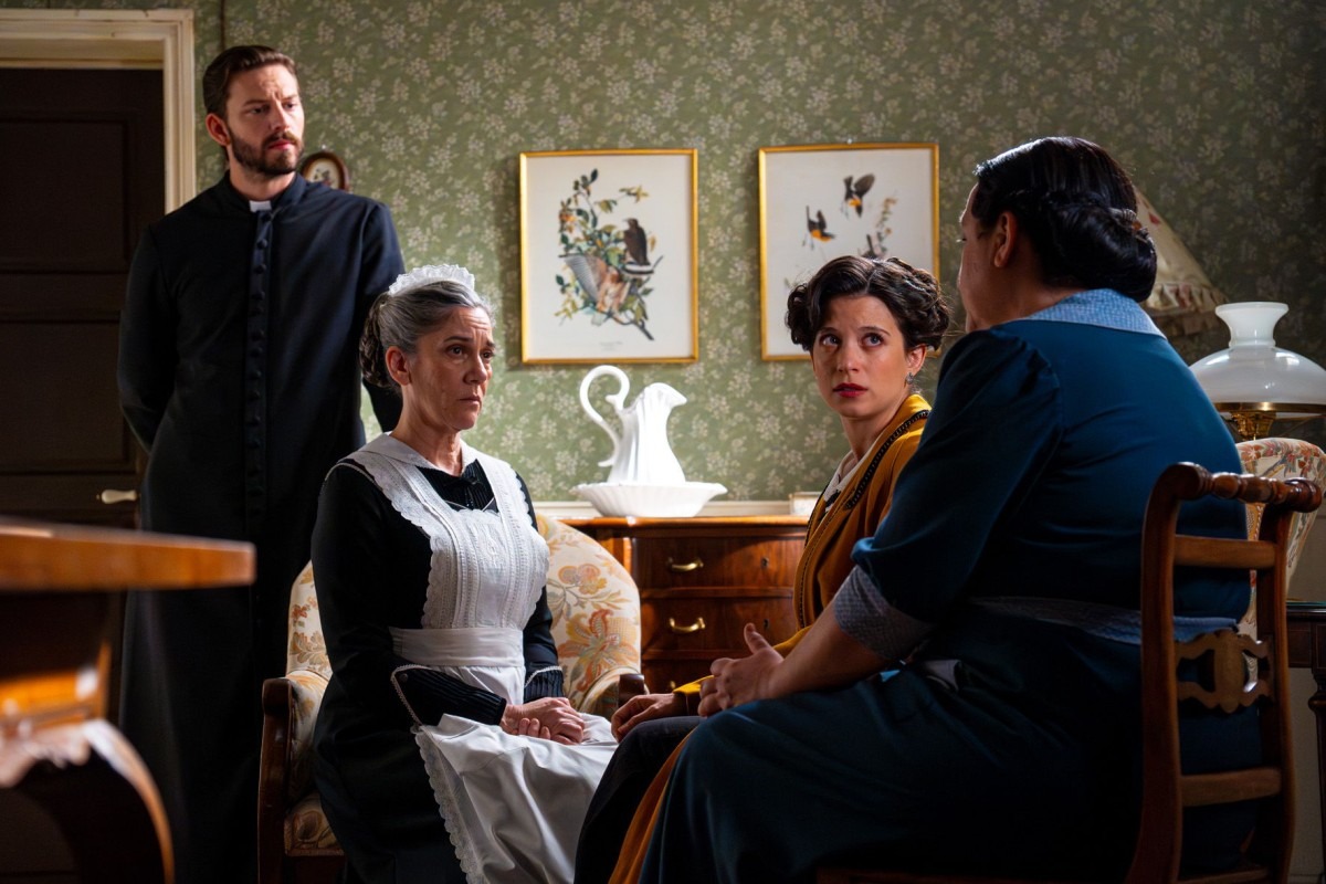 En el servicio, Teresa y Samuel debaten sobre el futuro de María y su bebé. Petra y Pía coinciden en que Ricardo oculta algo sobre la muerte de Ana. Mientras, Santos se ofrece a hacer un recado en lugar de su padre para evitarle el esfuerzo por su maltrecho tobillo. Esto, posteriormente, le vale una reprimenda de Cristóbal. Ángela termina preguntando a Pía si tuvo problemas con el barón de Linaja.